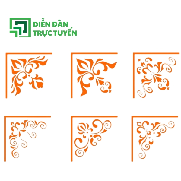 - Hoa văn góc cổ điển: Những mẫu hoa văn cổ điển thường có các họa tiết uốn lượn, chi tiết phức tạp như hoa lá, đường nét mềm mại. Những hoa văn này thích hợp cho các thiết kế mang phong cách vintage, cổ điển hoặc dành cho các sự kiện đặc biệt như đám cưới, lễ hội.